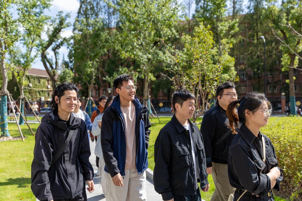 校友留影 寻踪·漫步——重温校园记忆 校友们漫步在美丽的校园,边走边谈,阳光透过树叶洒下斑驳的光影,大家走过熟悉的林荫道,看着既亲切又崭新的教学楼、图书馆,纷纷感叹母校的发展与变迁。 目的地——机械楼,是无数机械学子梦想启航的地方。再次踏入这片熟悉的天地,实验室里的专注、教室里的求索、图纸上的勾勒……那些青葱岁月里的记忆瞬间被唤醒。