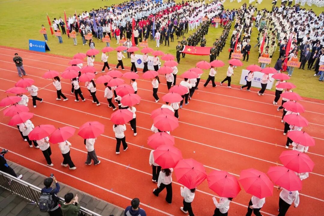 11月7日,上海理工大学2025年体育文化节暨田径运动会在516号校区田径场开幕。党委书记王凌宇,校长朱新远,党委副书记贺莉,党委副书记赵宁,总会计师赵明,副校长张华,党委常委、组织部长孙红,以及来自19个二级学院、附属学校的师生代表参加开幕式,开幕式由张华副校长主持。 学校国旗仪仗队高擎五星红旗,庄严入场。伴随着激昂的运动员进行曲,各代表队方阵紧随其后。上海理工大学附属小学、附属中学、附属储能中学的学生们率先亮相,各个学院运动队以各具特色的方式依次入场,展现出广大学子的青春活力。 校党委书记王凌宇、校长朱新远与师生代表共同启动了“上海理工大学健康管理年”活动,传递“健康第一”的理念,鼓励广大师生争做自己健康的第一责任人。 校长朱新远致开幕词,指出运动会是一堂生动的育人实践课,承载着“立德树人、全面发展”的重要使命。他总结了学校在体育领域取得的丰硕成果,并鼓励全体师生“走下网络、走出教室、走向操场”,以运动激发潜能、凝聚力量,以更阳光的心态、更饱满的状态、更强健的体魄投身到学校改革发展大潮中。 开幕式结束后,田径运动会各项比赛正式拉开帷幕。本次运动会包含学生组和教职工组,分别设置了竞技项目和趣味运动,师生同台竞技。赛场上,师生运动员奋勇争先,挑战自我,诠释体育精神;赛场下,拉拉队员助威呐喊。 经过两天激烈角逐,2025年上海理工大学体育文化节暨田径运动会圆满落幕。运动场的胜负暂告段落,但体育点燃的激情与梦想将在每一个上理人心中持续燃烧。这段携手拼搏的运动记忆,让“更高、更快、更强、更团结”的奥林匹克精神在微风细雨中愈发闪耀,也必将激励全体师生以更强健的体魄与更昂扬的姿态,在人生的各个赛道上奋勇向前,共同书写更美好的未来。