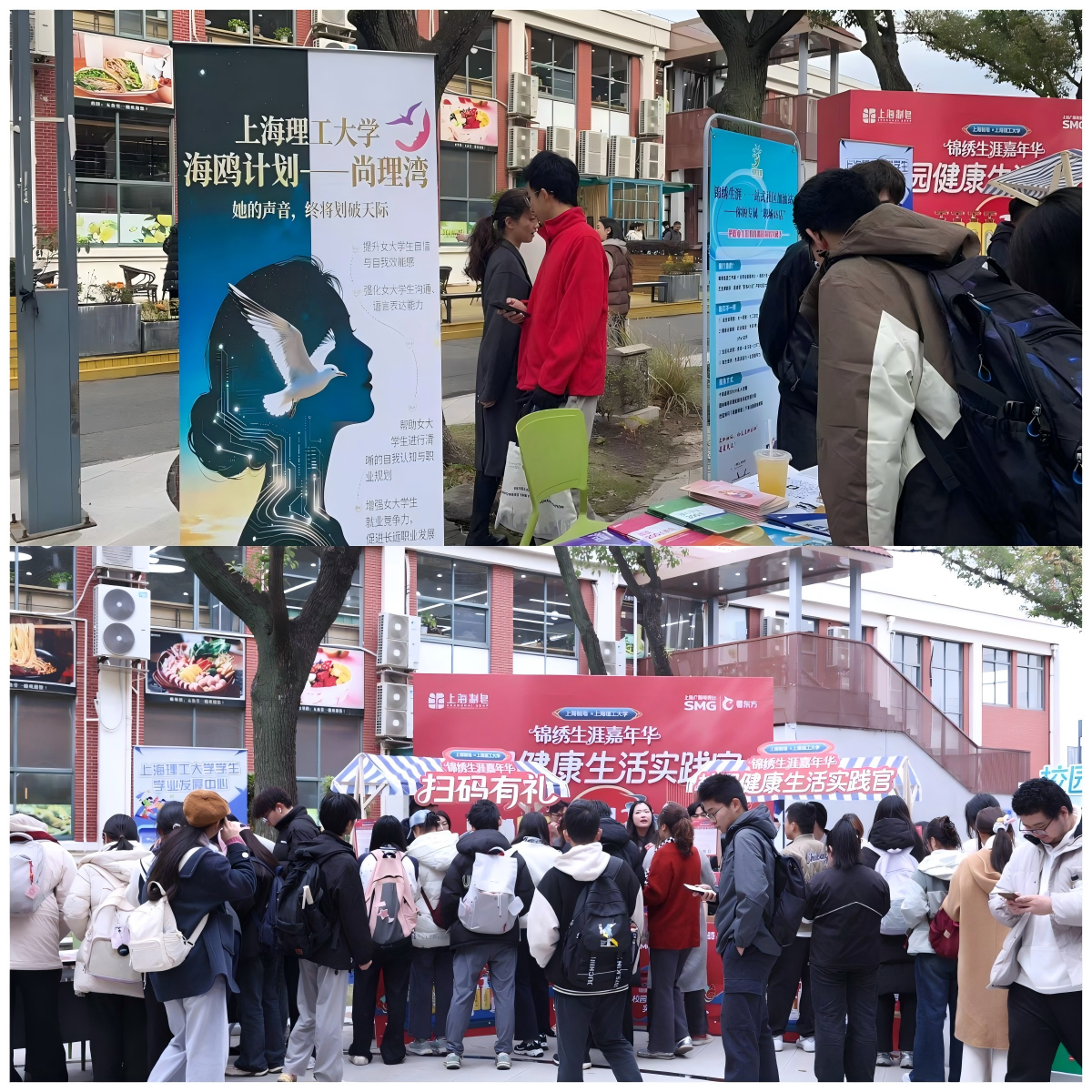12月10日,上海理工大学五食堂门前,一场别开生面的生涯教育探索热闹开场。为将生涯教育深度融入学生日常学习生活场景,切实帮助在校生提前感知职场、明晰个人规划,锦绣生涯工作室携手校学业发展中心、海鸥计划—尚理湾,于学生生活核心区开展“锦绣生涯嘉年华”活动,吸引了500余名师生参与体验。