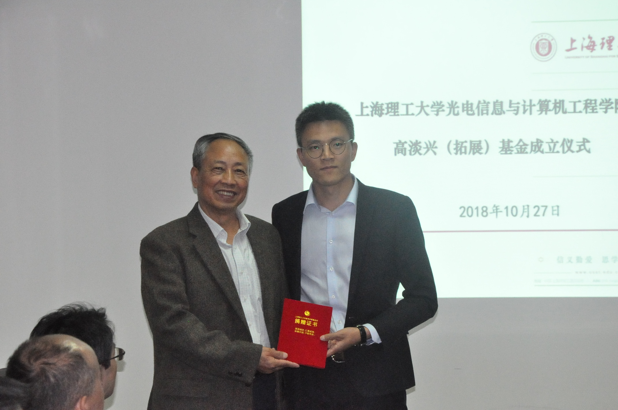 2010年,高淡兴校友带着一份特殊的礼物回到母校。他郑重宣布设立“高淡兴”助学金,每年捐赠5万元用于资助家庭贫困、自立自强的学生,并承诺在其有生之年,将一直资助贫困学生,直到生命尽头。这一善举的背后,是他对教育本质和校训朴素而深刻的诠释:“我当年得到母校的培养和师长的帮助,现在有能力了,必须回报社会。” 截至今年,高淡兴校友已连续15年向助学金注资,惠及40余名上理学子。从最初仅覆盖本科生的基础性资助,到如今创新构建了“经济帮扶+学业激励+成长导航”三位一体模式,涵盖本、硕、博的“精准化”“全程化”帮扶,这项助学金始终保持着最初的纯粹。高淡兴先生虽已年过七旬,但仍创造各种机会与受助学生面对面交流,将人生经验与感悟传授给学生,激励学生奋发图强,成长成才。他说:“看到孩子们眼里有光,我就觉得这笔钱花得值。”高淡兴助学金受助学生代表、博士生王庆芳谈道:“从本科到博士,高老的资助让我无后顾之忧地投身科研,这份温暖激励我不断前行,我也一定要将高老的大爱精神通过自己的努力持续传承下去。”她与高淡兴校友的深厚情谊,正是助学金赋能学子成长成才的缩影。