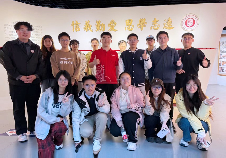 下午,全体成员参观了雷洁琼生平事迹展。雷洁琼是我国著名的社会学家、法学家、中国民主促进会创始人之一。在沪江大学任教期间,她对国家妇女工作、社会教育等社会问题作出了不可磨灭的贡献。新中国成立之后,她以强烈的爱国热忱投身于国家建设,为社会主义现代化建设贡献了智慧与力量。在马杰老师的带队讲解下,双方成员深受触动,纷纷表示要传承和弘扬雷洁琼教授的爱国精神与责任担当,将个人成长融入国家发展大局。 随后,全体成员参观了上海理工大学校史馆。在研究会社长李嘉毅、骨干成员马艺萌的共同引导下,两校学子驻足于珍贵的历史照片与实物前,共同追溯学校百廿办学的曲折历程与辉煌成就,深刻感悟其坚守的教育初心与深厚的文化积淀,进一步增强了传承校史、弘扬校风的责任感。