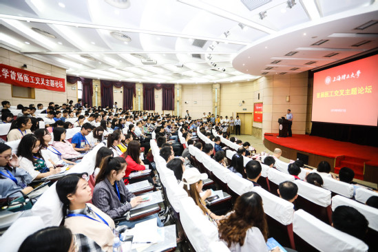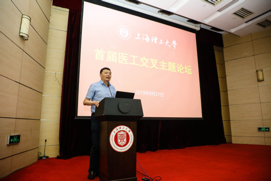 9月21日上午,我校主办的首届医工交叉主题论坛在学校综合楼报告厅举行。上海市科委生物医药处处长曹宏明,上海市教委科技处处长许开宇,上海交通大学医学院党委副书记、副院长吴韬,上海市生物医药科技产业促进中心主任傅大煦,上海长征医院骨科医院院长助理刘铁龙教授等嘉宾应邀出席论坛。我校党委书记吴坚勇、中国工程院院士庄松林、副校长刘平参加论坛,校办、科技处、协同创新研究院、研究生院等职能部门、相关学院、大学科技园、部分医疗器械企业负责人及首批医工交叉项目医生、教师与研究生代表等300余人共同参加。论坛由刘平主持。