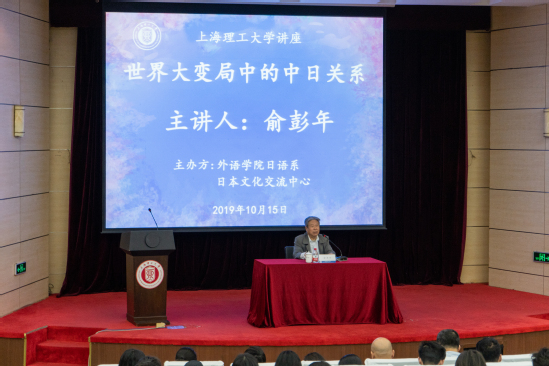 2019年10月15日下午,由我校外语学院日语系与日本文化交流中心共同主办的“世界大变局中的中日关系”讲座在我校综合楼报告厅举行。原上海市人民政府外事办公室副主任、上海市人民对外友好协会副会长、上海市日本研究交流协会会长、上海市日本学学会会长、上海市外事翻译工作者协会副会长俞彭年教授为三百余名听众带来了关于中日关系的精彩讲座。我校外语学院党委书记程旺、国际交流处副处长蔡卉、日本文化交流中心主任何伟铭等领导出席并听了讲座。
