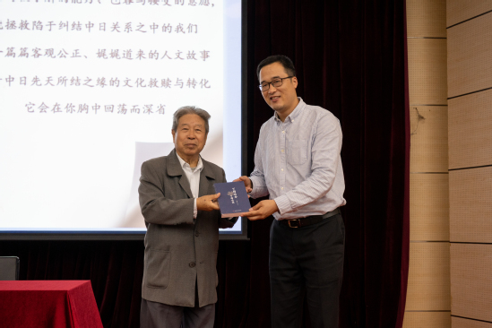 特别值得一提的是,演讲正式开始前,俞老师把凝聚了自己一生心血和研究精华的著作《了解日本 了解日语》赠送给我校,为我校广大教师和学子学习和研究日本与日语提供了一份宝贵的学习和参考资料。