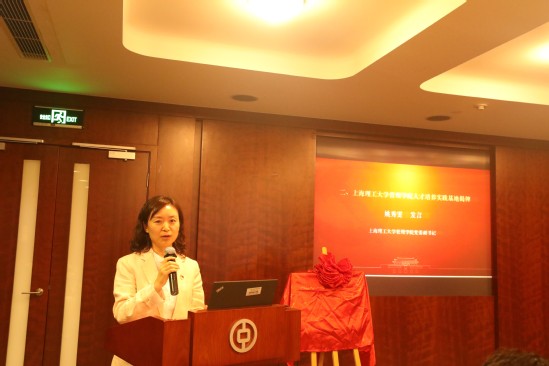 随后,中国银行党委委员、副行长柏莉华发言。她首先向管理学院一行的到来表示欢迎。她讲道,在党建联建的引领下,基于此平台,双方的合作和具体工作取得了非常好的成果。她充分肯定了上理工管理学院在人才培养上所作出的努力,对管理学院毕业生的素质给予了高度评价,认为他们不仅具有丰富的专业知识,而且具有实干的精神。她希望在人才培养实践基地这一平台上,双方能够进一步推动银校紧密合作,实现共赢共荣。