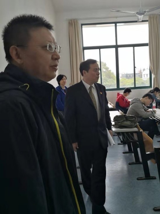 学校党委副书记盛春和上海市数学会理事长陈猛教授巡视考场