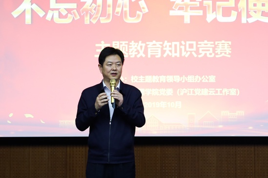 出席活动的领导嘉宾依次为获奖选手及参赛单位颁发了荣誉证书和奖牌。校党委副书记孙跃东在总结讲话中指出,根据党中央、上海市委和市教卫工作党委的部署和要求,学校主题教育各项工作正在扎实开展。孙书记肯定了本次知识竞赛在学校主题教育中的积极作用,并对全校学生党员和积极分子提出两点要求:一要不忘初心,牢记使命,坚定信心跟党走,自觉地把自身需求与社会需求相统一、把个人发展与社会发展相结合、把个人命运与国家命运相关联;二要不断强化理想信念,锤炼政治品质,对党忠诚,学生党员要积极发挥先锋模范作用,带动身边的人投身国家建设和民族复兴事业。