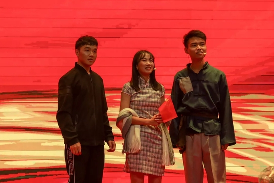 庆典晚会分为初逢、相遇、追光三个篇章,来自沪江勤工20个实体和部门的小勤人们将日常工作与成长蜕变融合进了各类节目,正值新中国成立70周年,沪江红塔文印以一部原创话剧朗诵《南枝》献礼;沪江1906咖吧的咖啡师们给我们带来拉丁舞舞台剧《咖啡师之梦》;沪江服装租赁中心的《招聘风波》让我们想起参加勤工助学招聘会时的情形;沪江暖屋超市的情景剧《勤工一分钟的相遇》更是让每天用心工作历练成长的小勤们产生了共鸣。
