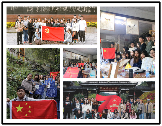 学院切实推进内容形式创新、方法手段创新、体制机制创新,将红色元素和红色基因嵌入专业学习,做到主题教育不间断,取得了丰硕的成果。视觉传达设计专业师生将红色元素嵌入课外实践,2019年10月赴贵州遵义,在实地体验具有千年历史的传统手工艺的同时,实景感受红军长征的艰苦卓绝。