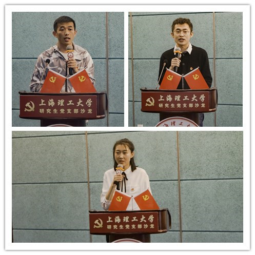 在“党员大讲堂”环节中,围绕“以青年之心,弘奋斗之志”主题,来自马克思主义学院的李莹、材料科学与工程学院的赵小雨和光电信息与计算机工程学院的程浩分别讲授了“国家富强,民族振兴”“初心不改,使命不怠”“心有大我,至诚报国”等内容。李莹从历史发展角度讲述了中华民族从站起来到富起来再到强起来的历史巨变,描述了一幅波澜壮阔的历史画卷;赵小雨讲述了近十年来在中国举办的国际盛会,展现了中国作为一个国际大国应有的责任和担当;程浩讲述了黄大年同志的英雄事迹,黄大年同志呕心沥血为我国的教育科研事业作出了突出贡献,激励广大研究生在新的历史方位上,勇担时代重任,争做新时代追梦人。