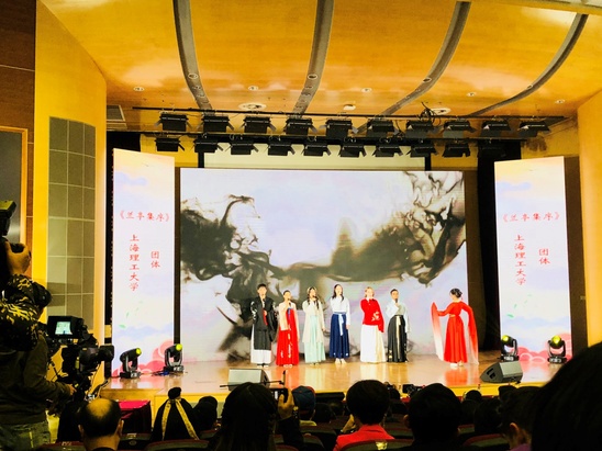 彰显隽永诗文,谱写友谊之路。11月10日,上海市2019年留学生中国诗文诵读大会展演活动在复旦大学举行。我校选送的《兰亭集序》以其丰富的表演内容、优美的意境、朗朗上口的诗风赢得评委和观众的喜爱,荣获最佳表演奖。