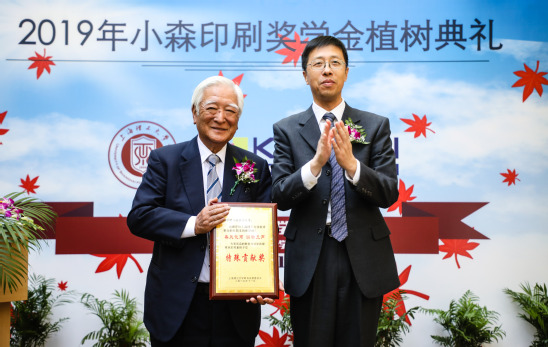 11月14日下午,2019年小森奖学金植树典礼和颁奖仪式在校举行。我校名誉教授、世界著名印刷机专业制造商日本小森株式会社会长小森善治、海外本部大中华区董事长津川俊之、输出一部专任部长贺来兴一,日本驻上海总领事馆首席领事等等力研、文化领事高冈智子,学校党委书记吴坚勇、总会计师赵明,党委(校长)办公室、国际交流处、校基金会办公室、版艺学院相关负责人,企业界代表、全体获奖学生出席相关活动。