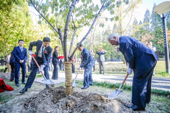 十年树木,百年树人。值小森奖学金在校设立第三个五年行将结束、第四个五年即将开始之际,小森株式会社特别向学校捐赠樱花树作为纪念。植树典礼在日本文化交流中心前举行,由版艺学院党委书记吴建安主持。在植树典礼上,吴坚勇书记、小森善治会长和等等力研领事分别致辞,并共同种下友谊之树。为感谢小森善治先生对我校教育事业的长期支持和帮助,吴坚勇书记为小森会长颁发了特殊贡献奖。