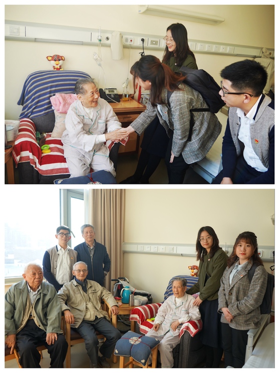 学生党员代表探望原国立高机地下党组织负责人诸韵芬等老同志
