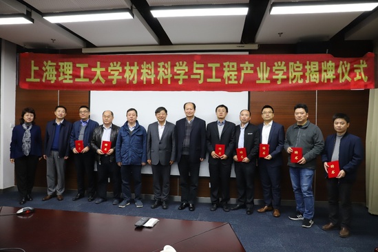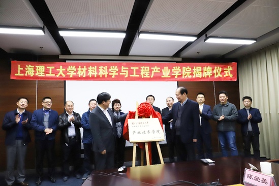 张华副校长和上海市材料领域的行业协会、学会代表和联盟企业代表共同为上海理工大学材料科学与工程学院产业技术学院揭牌。