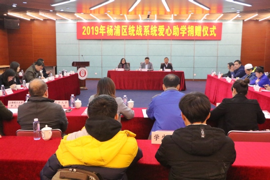 为进一步贯彻落实党的十九大精神,加强民族团结进步教育,助力少数民族学生成长成才,12月11日,杨浦区统战系统爱心助学捐赠仪式在我校举行。区委常委、统战部部长董鑫旺出席会议并讲话,区委统战部副部长、区民族和宗教事务办公室主任卢冰参加,副部长陈敏主持,校党委组织部(统战部)副部长李杰致辞。