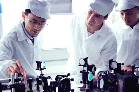 图1. 刘一教授(左)和Rostyslav Danylo(中),张翔(右)在实验中