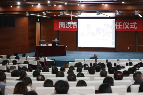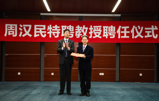 报告会前,学校举行周汉民特聘教授聘任仪式,副校长吴忠主持聘任仪式,吴坚勇为周汉民颁发聘书。