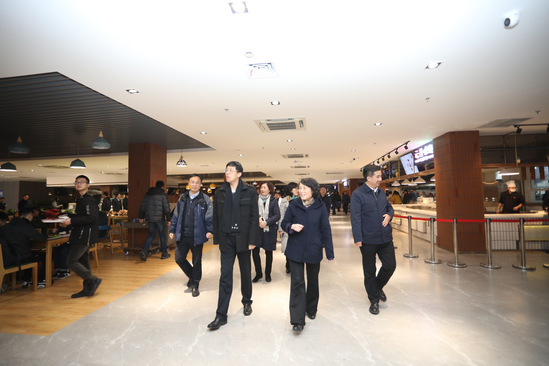 座谈会后,吴坚勇一行还参观了费林加诺贝尔奖科学家联合研究中心和食堂。华东理工大学化学与分子工程学院院长曲大辉介绍了化学一流学科建设及前沿科研工作开展情况。华东理工大学后勤保障处党委书记、处长岳海洋介绍了食堂建设、运行等后勤管理与服务情况。