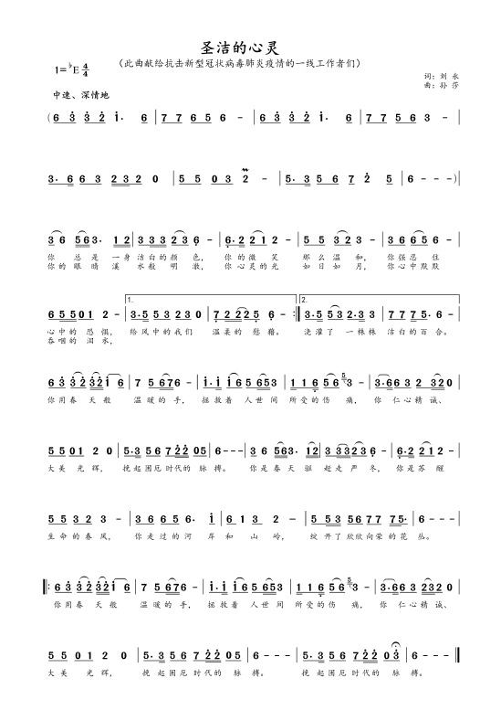 《圣洁的心灵》乐谱