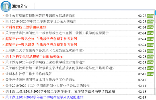 自1月28日起,教务处相继发布《关于进一步做好疫情防控期间春季学期开学本科教学相关工作的通知》《关于2019-2020学年第二学期课程第三轮选课的通知》《关于办理2019-2020学年第二学期课程学分认定的通知》《关于线上受理2019-2020学年第二学期学生休、复学等学籍异动申请的通知》《关于2019/2020(二)学期创新创业大作业学分认定的通知》《关于2019-2020学年第二学期教学日历录入的通知》等实施细则。通过反复的研讨、论证和测试,教务处首次开展了全体本科生的校外在线选课工作,首次推出了5种不同类型的学籍异动线上审批,首次推出学分认定的网上审批模式,首次开展了毕业设计线上管理工作,保障了本科教育教学各项工作的顺利开展。