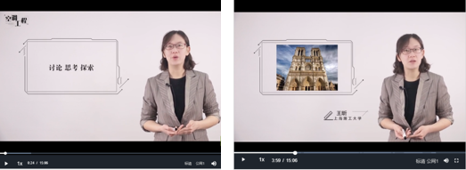 灰西装,白背景,一根录音笔。从“巴黎圣母院”“黄河文明”“楼兰古国”……这些看似无关的话题由王昕老师在第一堂《绪论》每小节6分钟左右的视频里娓娓道来,层层深入。古今中外的文明发展史故事在带有思辩的讲解中带出一部全球气候变迁史,环环相扣,发人深省,引导学生对环境、微气候、人工调节等专业辩题的兴趣。