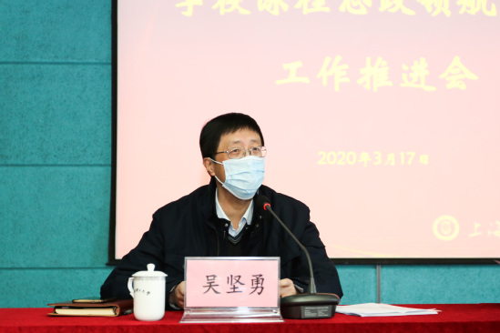 最后,吴坚勇书记对进一步落实课程思政领航计划进行了部署,并提出两项具体要求。第一,思政课程和课程思政为“一体两翼”的共同体。从思政课程到课程思政,应实现溶盐入汤、润物细无声的效果,将立德树人贯彻到课堂教学的全员、全过程、全方位之中,推动思政课程与课程思政协同前行、相得益彰。第二,在疫情防控期间,要统筹推进在线教学和课程改革发展,做到两手抓、两不误、两促进。以此次疫情为契机,应集中精力练内功、补短板,在课程思政领航计划中做到落实落细、分工明确、责任到人。他强调,这是考验党组织战斗力的时刻,我们应发挥党员先锋模范作用,在课程思政建设中,凸显学校办学特色、提升学校竞争力。