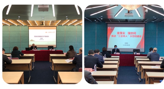 3月19日上午,校党委副书记、纪委书记、监察专员刘道平为学员们作了题为《党的纪律建设干部成长》的专题辅导报告。他从党的纪律建设不断完善的历程讲起,对干部健康成长的规律、路径进行了解读,勉励学员要成为信念坚定、为民服务、勤政务实、敢于担当、清正廉洁的新时期好干部,要不断提高学习力、思维力、决策力、创造力和执行力,不断修炼领导力。3月20日,校党委副书记孙跃东作了题为《重落实、强协同,推进三全育人示范校建设》的专题辅导报告,他从“三全育人”的初心使命、学校“三全育人”工作基础以及学校“三全育人”工作形势任务和工作要求等三个方面,全方位地为学员们介绍了学校开展“三全育人”示范校建设的情况。他强调,要按照学校《“三全育人”综合改革方案》的总体要求,重落实,强协同,扎实推进学校的“三全育人”工作。