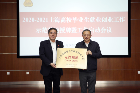 4月15日下午,2020至2021年上海高校毕业生就业创业工作基地授牌暨启动会议在我校召开,上海市教委总督学平辉,校党委副书记、副校长盛春,市教委学生处副处长吴能武,市学生事务中心副主任周红星,各基地高校分管学生工作校领导、部分兄弟高校就业创业工作同仁等出席会议,会议由吴能武主持。