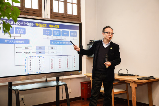陈国强院长在讲话中指出,交大医学院与上理工开展的医工交叉合作卓有成效。在国内高端医疗器械、医用药品及科研材料高度依赖国外进口,高端医疗研发与生产方面的自主创新能力还存在不足的情况下,两校合作的意义重大,空间广阔,两校相关部门要在人才培养模式、师资互聘等方面大胆创新,扩大协同效应。筹建的医工交叉创新与转化平台要定位更高,更大范围内整合凝聚优质社会资源,不断创新合作模式,为国家卫生健康事业作出更大贡献。
