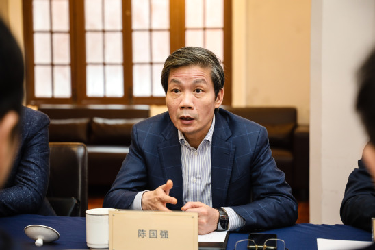 4月23日下午,上海交通大学医学院院长、中国科学院院士陈国强一行来我校复兴路校区进行医工交叉工作交流,交大医学院党委副书记、副院长吴韬、院办、科技发展处、研究生院、校产中心等主要负责人陪同来访。我校校长丁晓东、副校长刘平接待来访一行,党委(校长)办公室、科技发展研究院、研究生院、跨学科创新研究院、医疗器械与食品学院等部门负责人陪同参加会议。会议由丁晓东校长主持。