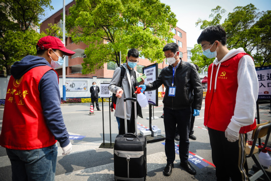“返校学生请走学生专用通道,准备好校园一卡通,出示健康码,接受测温、刷卡入校……”4月27日在上海理工大学军工路校区的各个出入口,“小喇叭”正在循环播放入校提醒。校门处设置了下车区、等候区、测温区、隔离区,层层“关卡”成为守护师生健康的第一道防线。