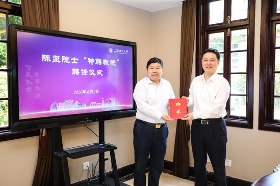 校长丁晓东为陈坚院士颁发聘书