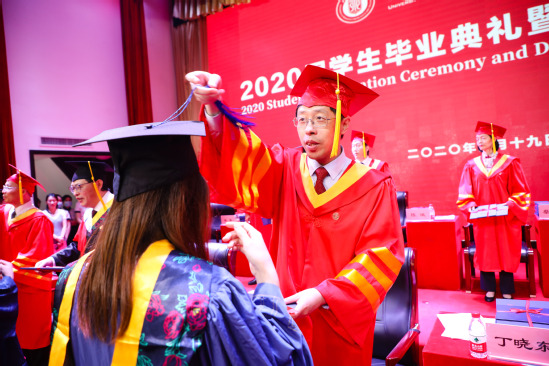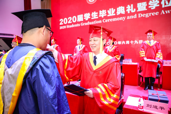 意气风发的2020届毕业生们依次走上主席台,从主席台上的领导、院士手中庄严地接过学历学位证书、接受拨穗。流苏缓缓地拂过脸颊,伴随着领导、院士们的殷殷祝福,毕业的画面在这一刻定格成了永恒。这是他们难忘的大学生涯中的终点,也是新生活的起点,这是值得永久铭记的时刻。