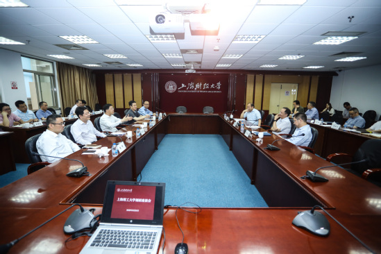 丁晓东首先对上海财经大学的热情接待表示感谢。他用“四个天”——“天然的渊源、天然的互补、天然的地缘、天然地携手”形容两校感情深厚,具有良好的合作优势,为进一步深化合作、实现互利共赢构建了天然的平台,并围绕学校第八次党代会、高水平大学建设、“十四五”规划编制、人才队伍建设和大学科技园建设等方面进行介绍。他对上海财经大学“常任轨”制度以及“以财经服务为特色的现代服务产业园”模式表示高度认可,希望两校以此次调研为契机,加强合作与交流,丰富合作载体,打造“政-资-产-学-研-用”一体化的创新体系,积聚一批以医工交叉、人工智能等前沿科技为主的产业群,共同谱写服务国家和区域重大战略需求的新篇章。