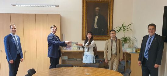 德国时间6月30日下午,我校和德国汉堡应用技术大学的合作项目学位授予仪式在德国汉堡应用技术大学会议室举行。德国汉堡应用技术大学技术与信息学院机械系主任Frischgesell教授专门为机械设计制造及其自动化专业的毕业生朱思韵颁发学位证书,机械专业德方负责人Beyer教授、德方任课老师Gärtner教授和Piskun教授见证了这一感人时刻。