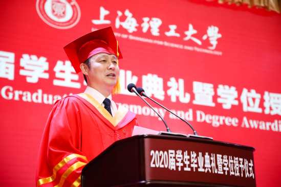 大家上午好!在新冠肺炎疫情防控常态化、全国复工复产复学的非常时期,上海理工大学抓紧推进毕业生返校工作,许了你们一个“可触摸”的菁菁校园,许了你们今天这场“在现场”的毕业典礼,只愿你们不留遗憾地奔赴前程。首先,我要向圆满完成学业的2020届全体博士研究生、硕士研究生、本科毕业生致以最热烈的祝贺!向为同学们成长成才付出辛勤努力的各位老师和家长,致以最崇高的敬意!