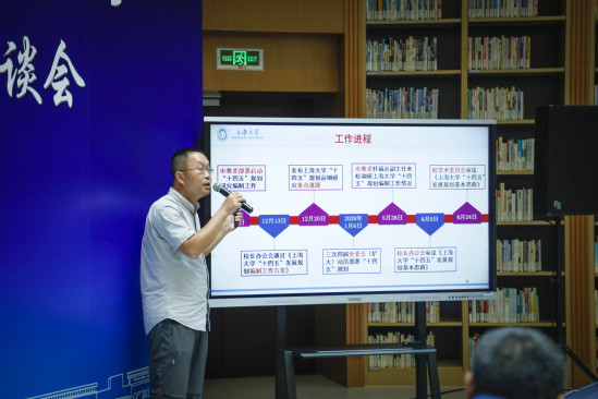 上海大学发展规划处处长王刚、教务处副处长顾晓英分别就上海大学高水平大学建设及“十四五”规划编制情况、课程思政改革与建设情况作了专题介绍。