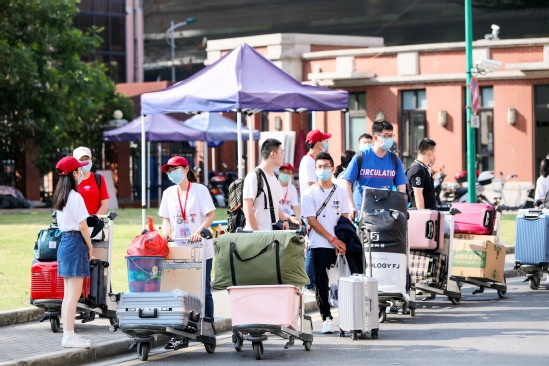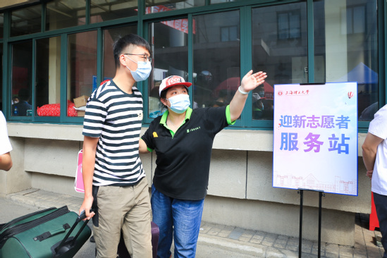 “同学你好,欢迎来到上海理工大学,我是你们的学长,请大家佩戴好口罩……”在这个特别的迎新日,学校“师生总动员”,校级层面招募50余名教师志愿者、400多名学生志愿者,分布在校园各处为新生排忧解难。环建学院研究生云辉就是志愿者之一,他在516号校区五宿舍跑上跑下,忙着帮学弟学妹们搬运行李,“早上六点就起来了,两个多小时搬了有十几趟,虽然很热也很辛苦,但就想着多帮学弟学妹做点什么,让他们感受到上理大家庭的温暖。”