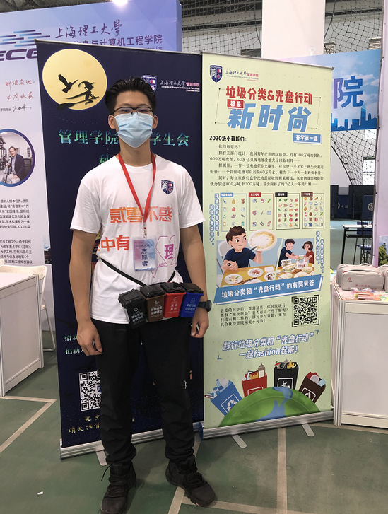在管理学院迎新点,特别设置了线上垃圾分类和“光盘行动”的有奖竞答、线下互动小游戏等环节,使新生们在愉快的氛围中了解垃圾分类的知识,增强勤俭节约的意识。“进入上理的第一天,我就感受到了学校对于垃圾分类和光盘行动的重视。践行垃圾分类,保护校园环境,从我做起,从开学第一天做起!”管理学院新生余倩谈道。此外,在基础学院食堂门前也摆放着分类垃圾桶以及垃圾分类宣传板,同学们有序地将包装袋、纸盒等新产生的垃圾扔到相应的垃圾桶内。理学院迎新点也用引导性、鼓励式的游戏方式让新生了解垃圾分类的重要性,积极投入到学校垃圾分类的日常生活中。