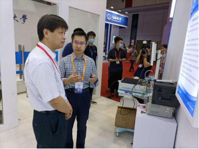 开幕式当天,教育部科技发展中心副主任刘红斌、上海市教委主任王平、校党委书记吴坚勇等参观了我校展区以及院士成果展区。庄松林院士、参展项目负责人对各自项目的研发过程、应用情况等进行了详细的介绍。