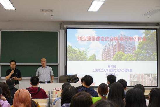 9月23日,学校面向全校本科生开设的“中国系列”思政课选修课——“智慧中国”2020年第一讲在线下、线上同步开讲。国家科技进步一等奖、“全国杰出专业技术人才”荣誉称号获得者,“新世纪百千万人才工程”入选者,我校能源与动力工程学院院长杨其国教授应邀以“制造强国建设的召唤——践行者的使命”为题作报告。报告会由马克思主义学院副院长牛海教授主持。