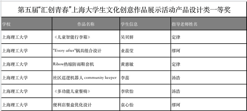 近日,由上海市教育卫生工作委员会、上海市教育委员会主办的第五届“汇创青春”上海大学生文化创意作品展示活动结果揭晓,我校版艺学院学子再创佳绩,在产品设计类、动画类、视觉传达设计和环境设计四个类别中共获得上海市一等奖11项、二等奖14项、三等奖6项。