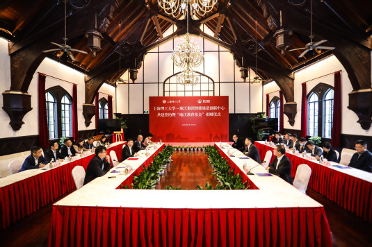10月19日上午,“上海理工大学—地江集团智能建造创新中心”共建签约暨“地江教育基金”捐赠仪式在我校举行。上海地江集团董事长、97级交通工程专业校友林建华,地江集团执行董事张志勇、总裁章有明、副总裁田霞及集团相关部门负责人,我校党委书记吴坚勇,党委副书记、副校长盛春,副校长刘平及相关部门和学院负责人出席仪式。签约仪式由盛春主持。