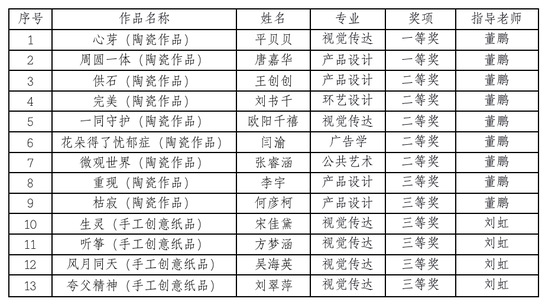 由中共上海市教育卫生工作委员会、上海市教育委员会主办,上海工艺美术职业学院承办的第五届“汇创青春”上海大学生文化创意作品展示季——工艺美术类作品评比结果揭晓,版艺学院获得佳绩,共获一等奖2项、二等奖5项、三等奖6项。