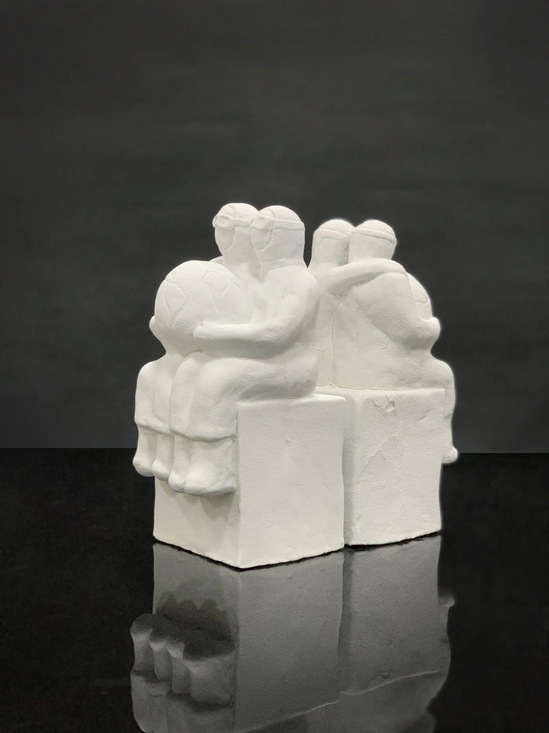 创意说明:通过塑造两位医护人员抱紧我们的家园,体现病毒无情、人有情,守护者们用生命守护生命,即使身兼疲惫,也一直默默坚守岗位。