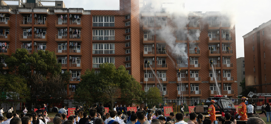活动现场,消防宣传车首发仪式拉开了本次活动的序幕。随后,我校师生在二公寓二号楼参加了消防疏散演练活动,6所高校大学生团队参加消防安全运动会。通过模拟宿舍起火、呼救、组织人员逃生疏散、消防员现场救援,大学生使用灭火器、灭火毯灭火,伤员救助,消防装备器材穿戴,消火栓及消防水枪等项目的模拟演练和实战比拼,让参与群众和师生有了一次“零距离”的火灾应急逃生与应急处置体验。赛后,与会领导为运动会各项目获奖高校代表颁奖。