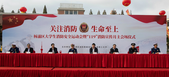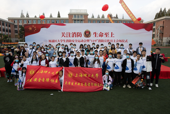 11月16日下午,杨浦区大学生消防安全运动会暨119“关注消防,生命至上”主题消防月启动仪式在军工路主校区田径场举行。市消防救援总队党委委员、政治部主任孔嘉文,杨浦区委常委、副区长周海鹰,校党委书记吴坚勇,校长丁晓东,校党委副书记、副校长盛春,杨浦区应急管理局、公安局、消防救援支队及相关部门领导出席活动。杨浦区消防救援官兵、参加消防安全运动会的6所高校参赛队员,区各街道各相关单位代表、市民代表、我校师生代表共500余人参加活动。