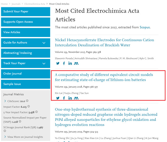 入选期刊《电化学学报》的“被引用最多的文章”