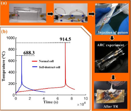 包裹毒化胶囊的自毁电池的热失控实验